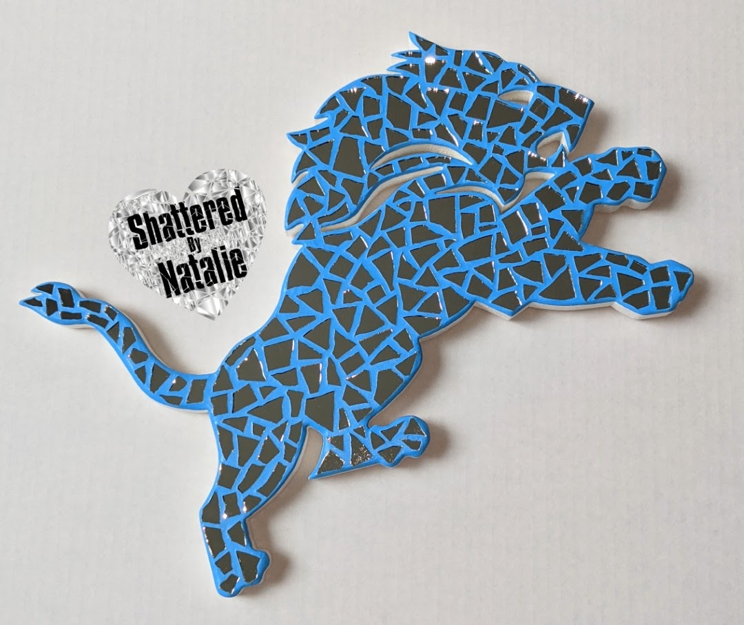 The Shattered Mirror Mosaic Lions Inspired wall art is the perfect way to represent your favorite team in your home. Amazing gift idea to show your Lions Pride **Shipping calculated once completed piece is packaged and weighed**