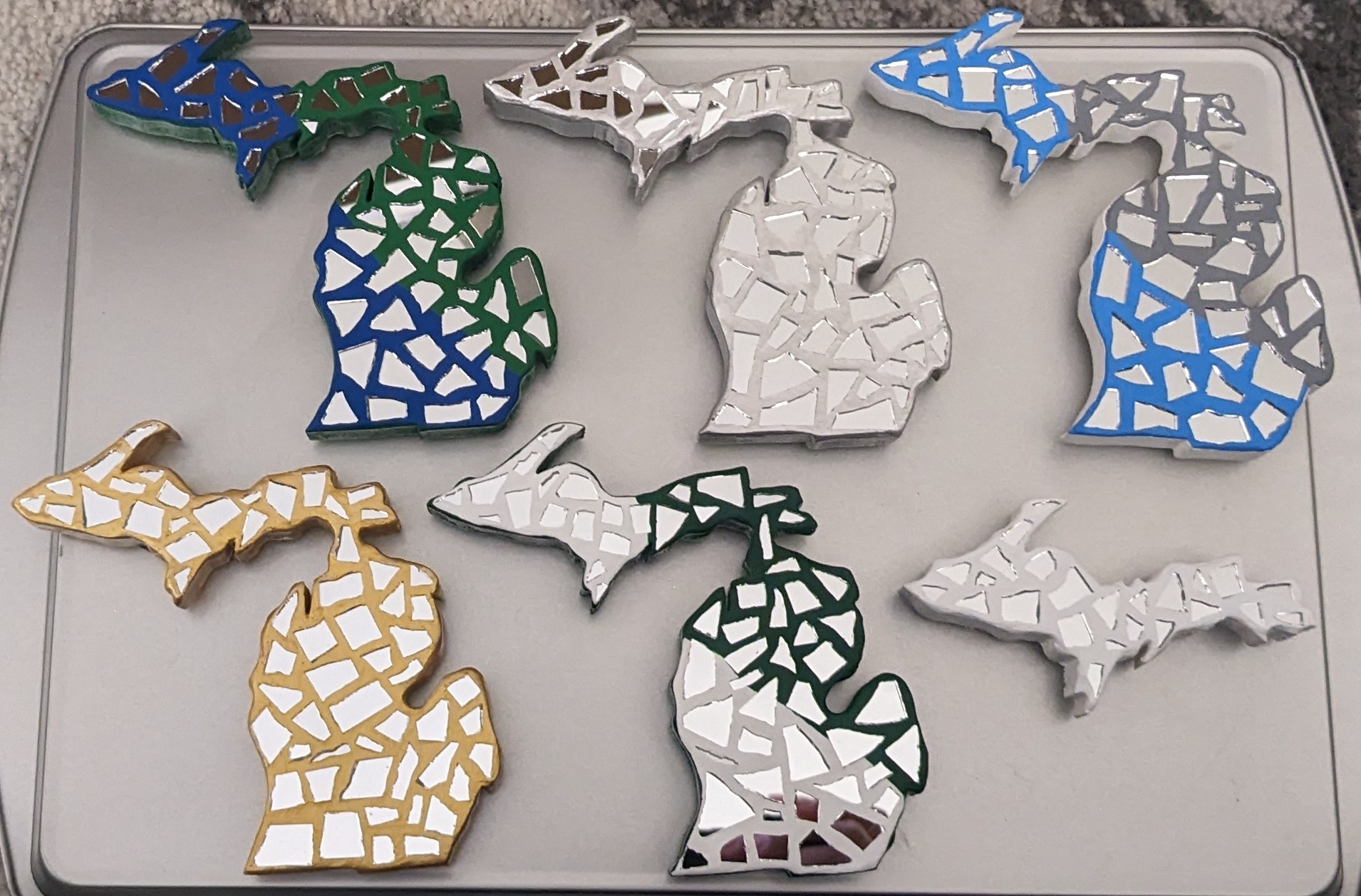 Super lightweight, amazing sparkle in Michigan outline earrings with real mirror pieces! Pick your favorite color or colors to match your style! Price includes U.S. shipping! *Allow 1-2 weeks for custom order*