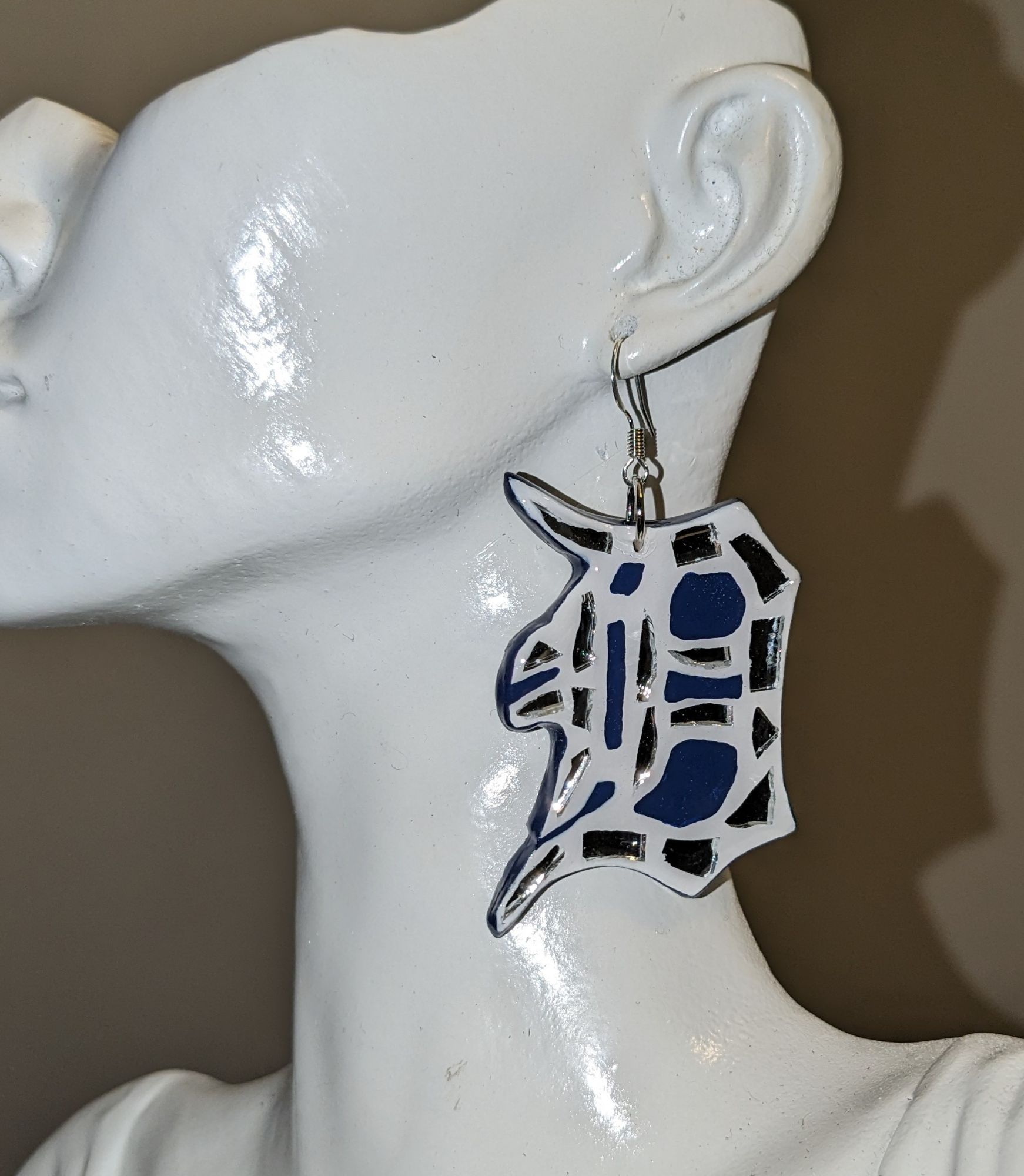 Shattered “D” Earrings White/Navy